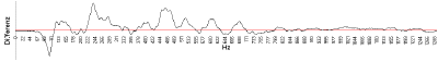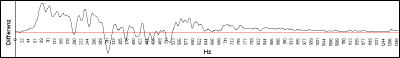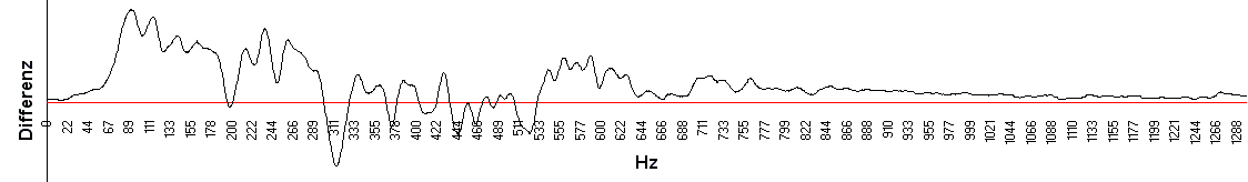 The horizontal line represents a 100% perfect match. The diagram shows the difference of both voice profiles. The evaluation resulted in a match of less than 50% and so both voices are not identical.